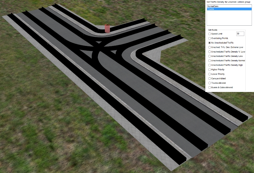 Die Verkehrsdichte direkt nach Verlegen des Splines: LKWs fahren noch nicht.